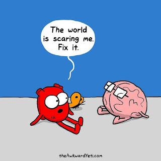 He runs to me and cries and says he's scared. I tell him that's ok because sometimes fear keeps us safe and fear tells us to act and not be passive about something dangerous.
